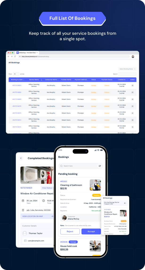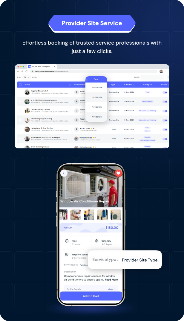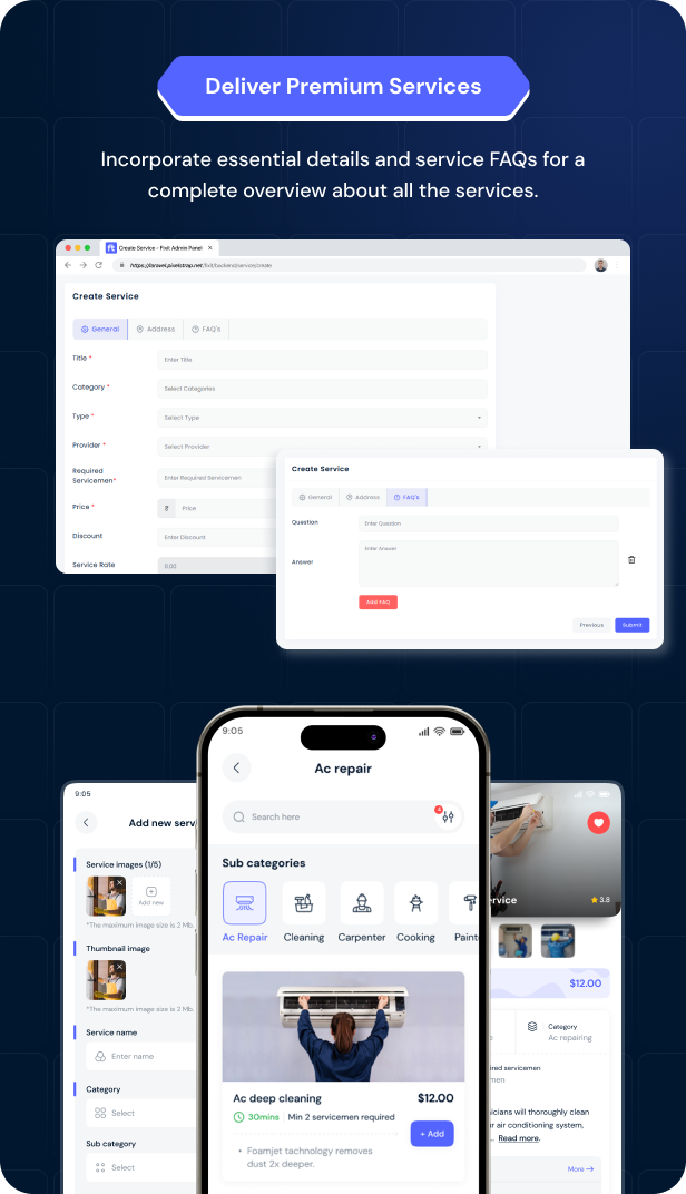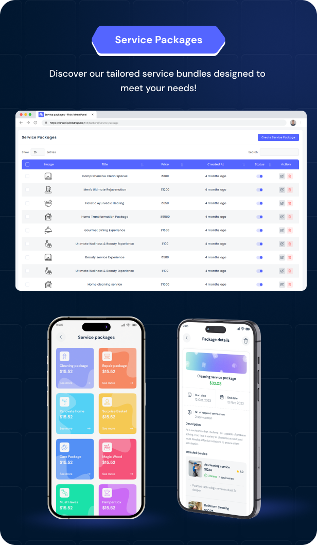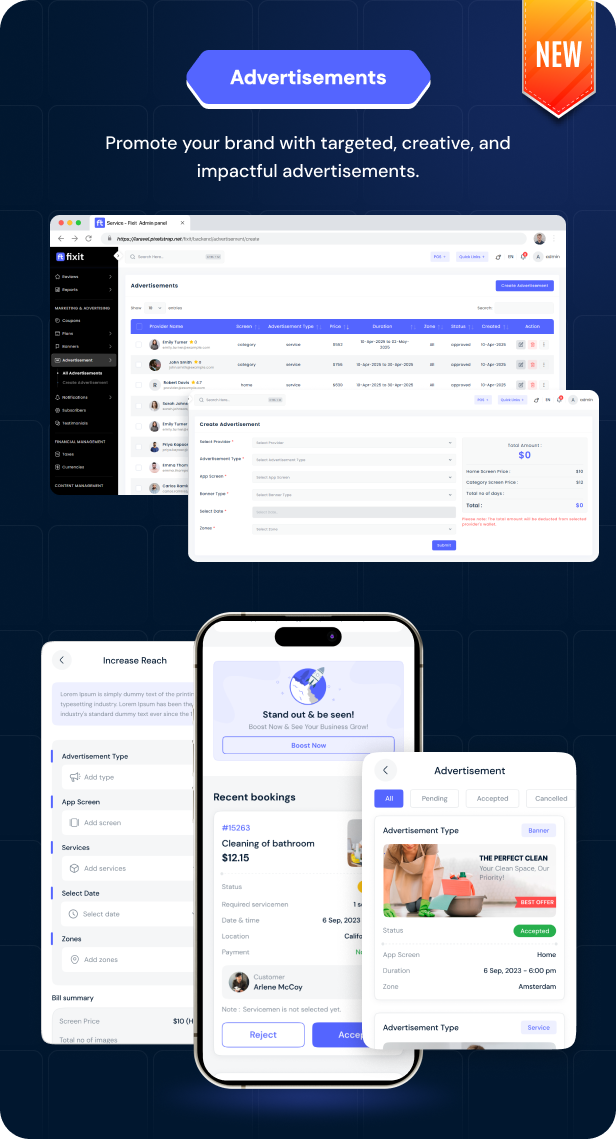 Fixit v2.0 – 多供应商按需服务、家政维修、家庭服务 Flutter 应用程序带完整管理员解决方案源码免费下载。Fixit 用户端是一款服务类应用。在该应用中,用户可预约男女皆宜的美容与健康服务,以及房屋维护与维修服务,包括空调维修、电工、水管工和木工等。用户还可实时查看预订状态,并针对特定预约进行支付。